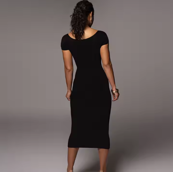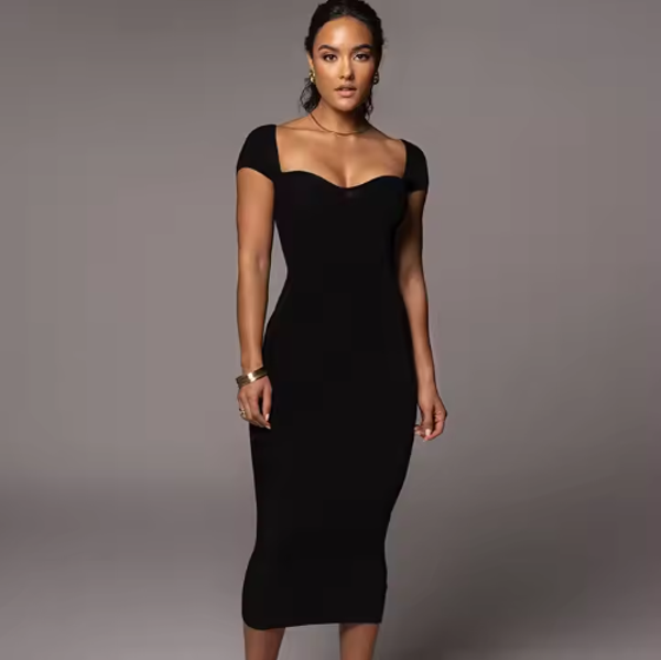 robe longue crayon à nervures et épaules dénudées pour femmes