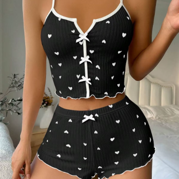 pyjamas décontractés pour femmes ensemble en forme de cœur imprimé à manches courtes