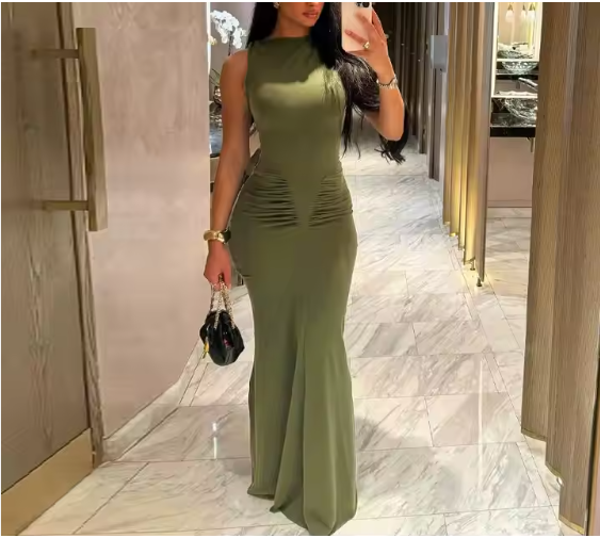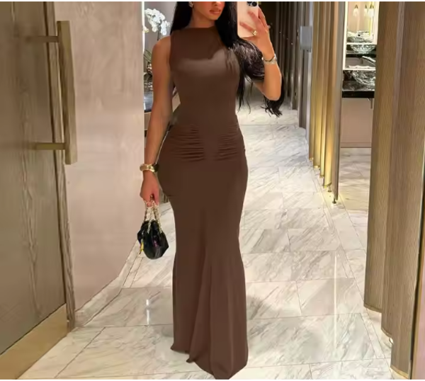 Robe longue élégante et solide pour femmes, classique, simple, sans manches