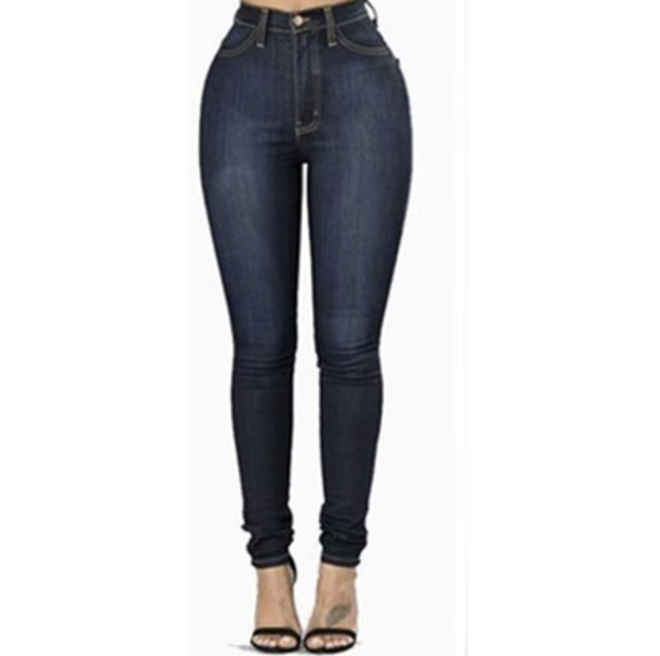 pantalon long élastique décontracté à taille haute Pantalon crayon en denim slim extensible pour femmes